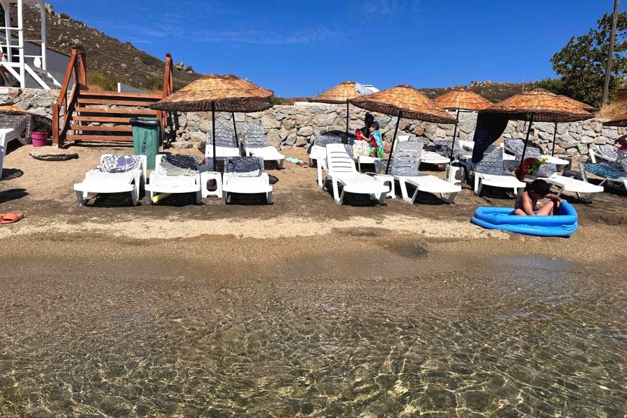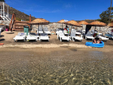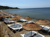 plajda şezlongları bulunan otelin
