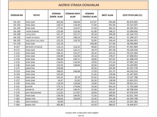 DÜKKAN FİYATLARI